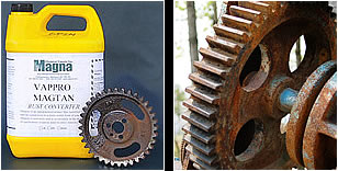 Gel Líquido Removedor de Moho: Remueve efectivamente el Moho, Manchas, Empañamiento del Hierro, Acero, Latón, Metal, Cobre, Aluminio y Cromo. A diferencia de los removedores de moho convencionales. MAGNA RUST BUSTER previene el goteo. Incrementa la productividad ya que no hay necesidad de dejar partes sumergidas. Simplemente aplica sobre las partes enmohecidas y déjelo trabajar, luego lo retira con un